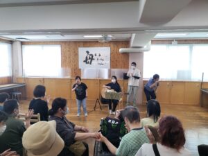 演奏し、曲にあわせてみんなで歌い、楽しいひと時を